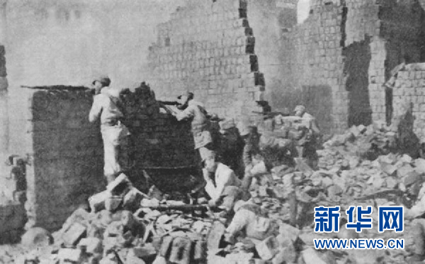 中國軍隊在廢墟中向日軍射擊。 9月8日,國家檔案局在其官網(wǎng)發(fā)布了《浴血奮戰(zhàn)——檔案里的中國抗戰(zhàn)》第十五集:萬家?guī)X大捷。 新華社發(fā)(中國第二歷史檔案館提供)