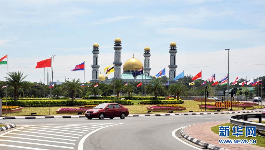 2013年10月7日 (國(guó)際)文萊準(zhǔn)備迎接第23屆東盟峰會(huì)及系列峰會(huì) 10月6日,文萊首都斯里巴加灣市街道兩邊懸掛著東盟及對(duì)話伙伴國(guó)的旗幟。第23屆東盟峰會(huì)及系列峰會(huì)將于10月9日至10日在文萊首都斯里巴加灣市舉行。新華社發(fā)(杰弗里攝)