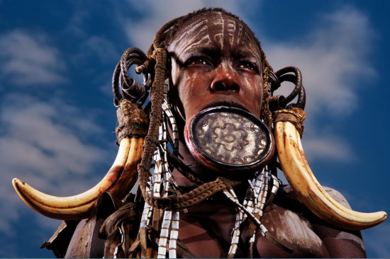 攝影師瑪?shù)贍栠_-坦博雷多次前往偏僻的埃塞俄比亞南部奧莫山谷地區(qū),為當?shù)仫L俗奇特的部落居民拍攝肖像照。這里的女子有著獨特“唇盤”裝飾,她們以唇部畸形為美,沒有唇盤的女性難以找到理想夫婿。如今,奧莫山谷的寧靜將被全球化潮流打破,越來越多的部落女性開始選擇放棄傳統(tǒng)的唇部裝飾風格。