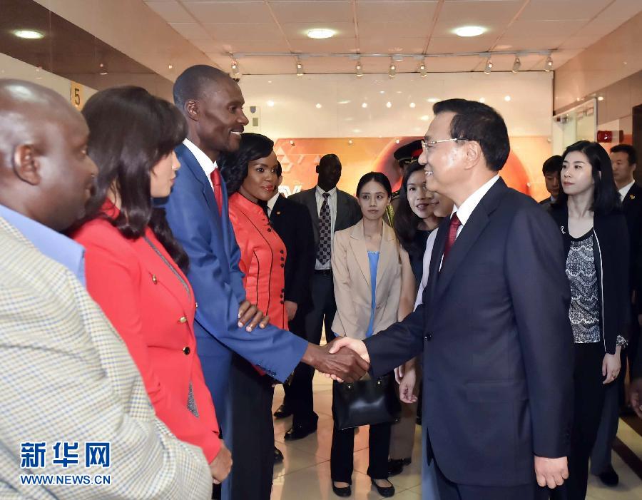 5月11日,國務(wù)院總理李克強在肯尼亞首都內(nèi)羅畢看望并慰問中央電視臺非洲分臺員工。 新華社記者 李濤 攝