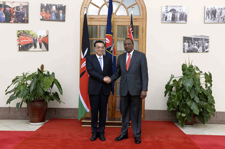 新華網(wǎng)北京5月10日電 據(jù)新華社“新國際”微博報(bào)道,肯尼亞總統(tǒng)肯雅塔10日上午在國家宮為中國總理李克強(qiáng)舉行隆重歡迎儀式,F(xiàn)場鳴放禮炮,軍樂隊(duì)奏兩國國歌。李克強(qiáng)檢閱了儀仗隊(duì)。