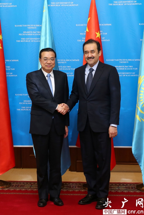 央廣網(wǎng)北京12月14日消息(記者劉樂)14日下午,李克強(qiáng)總理在阿斯塔納與哈薩克斯坦總理馬西莫夫舉行中哈總理第二次定期會晤。李克強(qiáng)表示,中哈互為友好鄰邦,愿以兩國高水平政治互信為依托,推進(jìn)互利互惠合作。中哈總理定期會晤每兩年舉行一次,第一次會晤于2012年在北京舉行。
