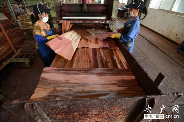 央廣網(wǎng)玉林8月25日消息 廣西國有六萬林場是廣西壯族自治區(qū)林業(yè)廳直屬國有林場,是第一批廣西現(xiàn)代林業(yè)產(chǎn)業(yè)化龍頭企業(yè)。為延長產(chǎn)業(yè)鏈,六萬林場成立廣西六萬山林業(yè)有限公司,六萬山林業(yè)公司在興業(yè)縣大平山機械產(chǎn)業(yè)園建設(shè)年產(chǎn)12萬m3膠合板項目。來自全國各地的媒體記者饒有興致的參觀了這個擁有目前國內(nèi)最先進的高溫固化熱壓機的膠合板生產(chǎn)廠。