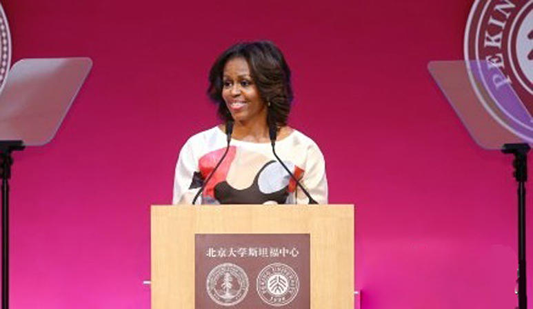 2014年3月22日,米歇爾來訪北京大學,于斯坦福中心發(fā)表演講。在開始演講前,她首先對馬航事件表示了關(guān)心和慰問。她以一句中國古話開場:讀萬卷書,不如行萬里路。(北大新媒體)