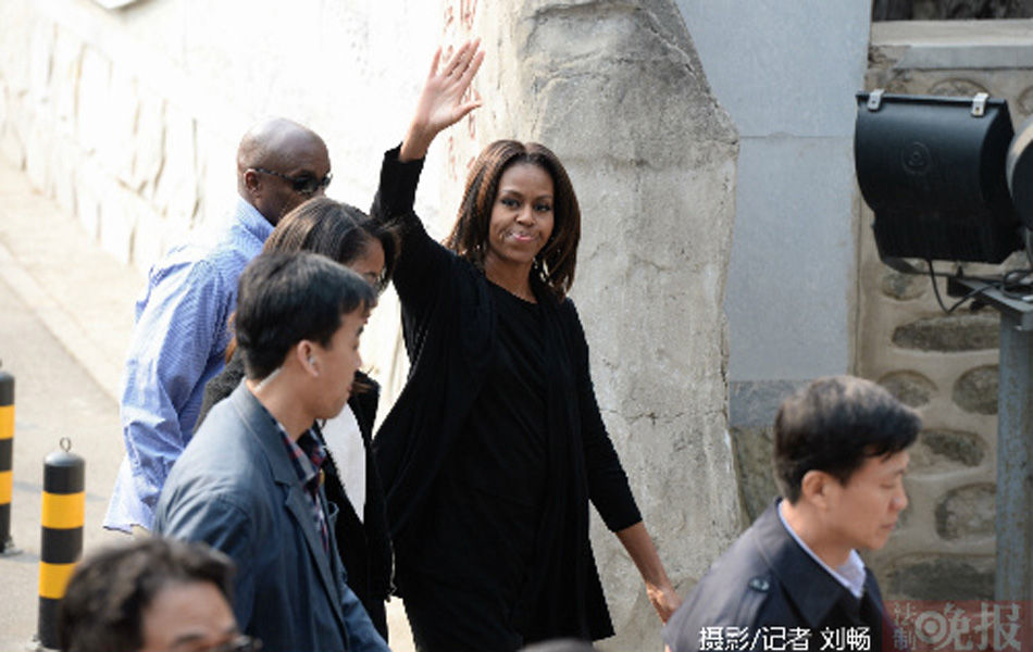 3月23日下午3點左右,美國第一夫人米歇爾一行來到慕田峪景區(qū),車隊駛入一號停車場,隨后從停車場步行進入景區(qū)入口。途中,米歇爾向圍觀的游客友好的揮手。在此之前,米歇爾的母親已經(jīng)先行乘坐帕薩特直接進入景區(qū)。法制晚報 劉暢 攝