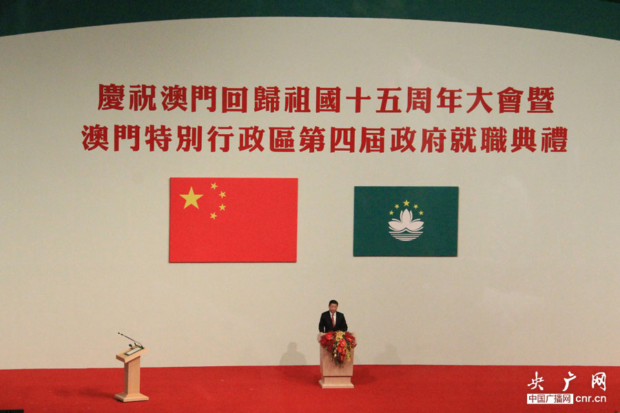 習(xí)近平出席慶祝澳門回歸祖國十五周年大會暨第四屆特區(qū)政府就職典禮并發(fā)表講話
