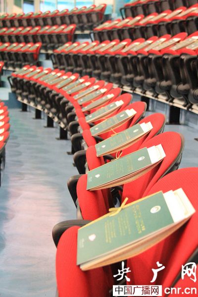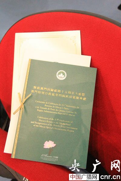 現(xiàn)場座位整齊的擺放著澳門特區(qū)第四屆政府就職典禮流程