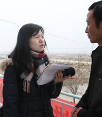 中央臺記者刁瑩采訪大棚蔬菜種植戶