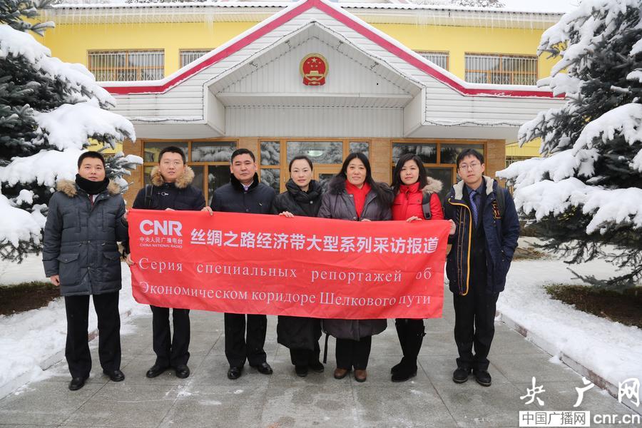 中央臺絲路采訪組在中國駐阿拉木圖領(lǐng)事館合影