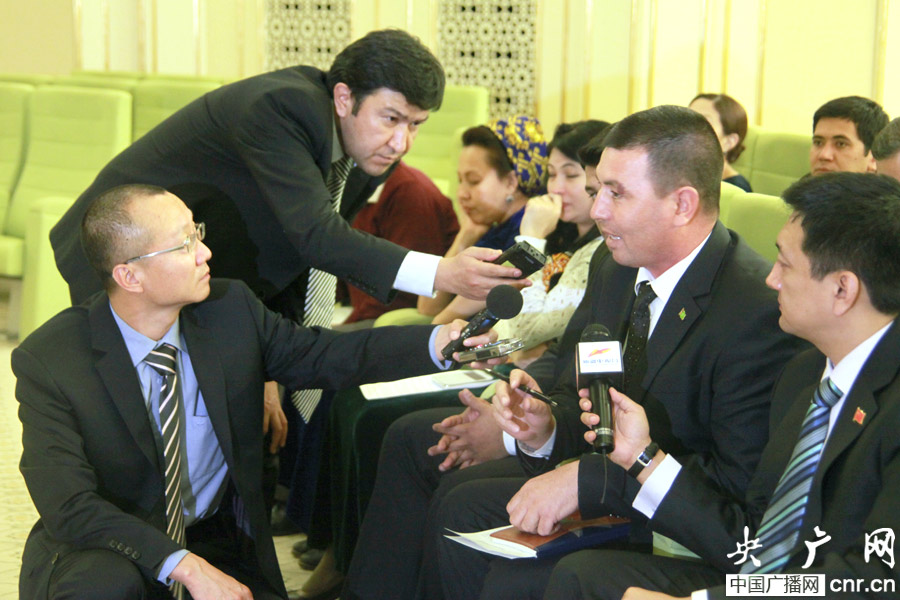 中央臺(tái)絲路采訪組巴哈提亞爾在采訪中