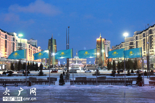 一下飛機(jī)我們就直奔中國(guó)駐哈薩克斯坦大使館開(kāi)始采訪之旅,好在采訪間隙我們有機(jī)會(huì)走馬觀花的參觀,哈薩克斯坦的獨(dú)立宮、廣場(chǎng)等建筑。一路上阿斯塔納的新元素刺激著我的視覺(jué)細(xì)胞,真希望相機(jī)的連拍能再快些,電池不要耗的那么快。