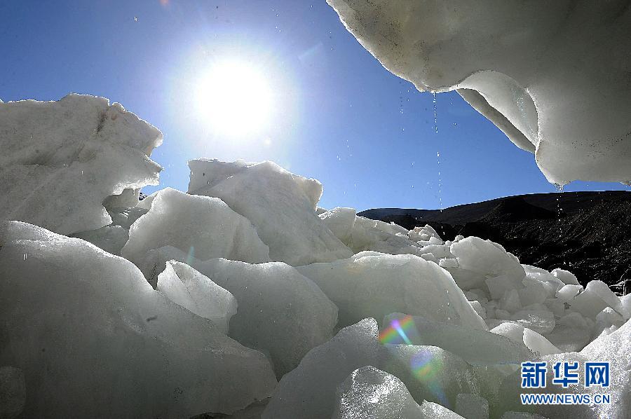 普若崗日冰原位于西藏那曲地區(qū)雙湖縣,是世界第三大冰川,按照冰川學(xué)界的劃分,被歸為“冰原”。冰原面積400多平方公里。冰原所處的青藏高原作為全球中緯度地區(qū)海拔最高的地域,受全球氣候變暖影響明顯。在過去30余年間,青藏高原海拔4000-5000米高度范圍內(nèi)年平均氣溫上升了1.8℃,遠(yuǎn)高于全國平均值。與此同時(shí),普若崗日冰原已向上收縮約50米。新華社記者唐召明攝
