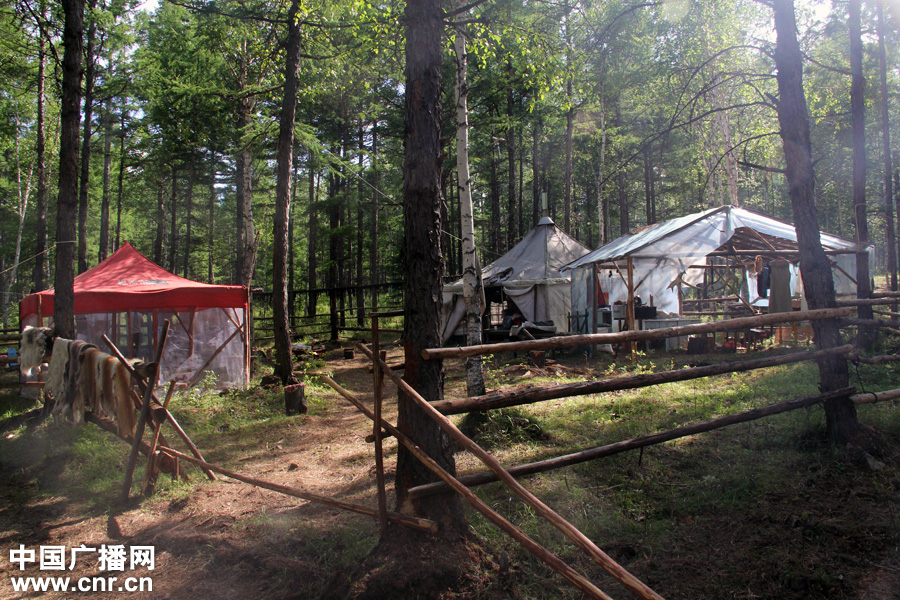 圖為敖魯古雅森林中一處獵民點(diǎn)。由于馴鹿以山林中的苔蘚為食,目前仍有一部分獵民隨著馴鹿在森林中居住。中廣網(wǎng)記者寧?kù)o_攝