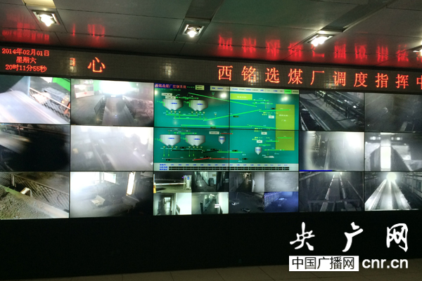 山西焦煤集團(tuán)西銘礦選煤廠調(diào)度室里的監(jiān)控屏