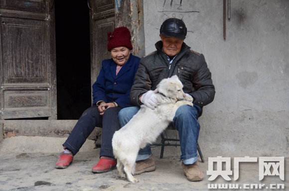 張邦貴老人和老伴在家門口(央廣網(wǎng)發(fā) 張龍攝)