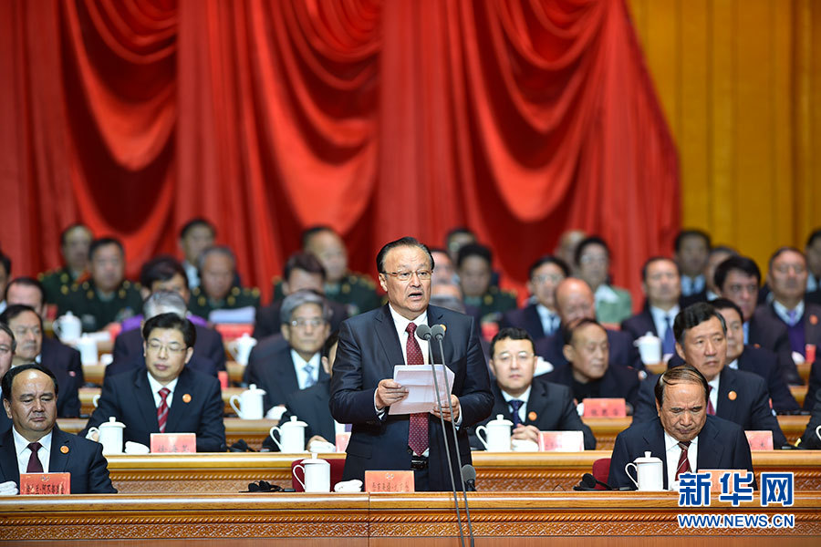 10月1日,慶祝中華人民共和國(guó)成立66周年暨新疆維吾爾自治區(qū)成立60周年大會(huì)在新疆人民會(huì)堂舉行。圖為新疆維吾爾自治區(qū)主席雪克來(lái)提·扎克爾主持大會(huì)。新華網(wǎng)記者 郭小天 攝