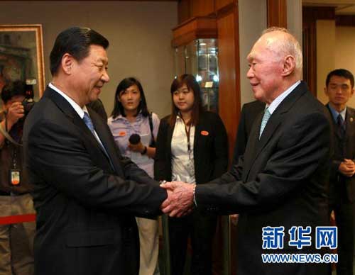11月14日,中國國家副主席習(xí)近平在新加坡會(huì)見新加坡內(nèi)閣資政李光耀。新華社記者 龐興雷 攝