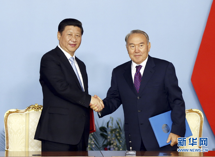 9月7日,國家主席習近平在阿斯塔納同哈薩克斯坦總統(tǒng)納扎爾巴耶夫舉行會談。會談后,兩國元首共同簽署《中哈關于進一步深化全面戰(zhàn)略伙伴關系的聯(lián)合宣言》。新華社記者 鞠鵬 攝