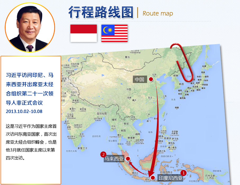 此次出訪是習近平作為國家主席首次訪問東南亞國家,首次出席亞太經合組織峰會,也是他3月就任國家主席以來第四次出訪。