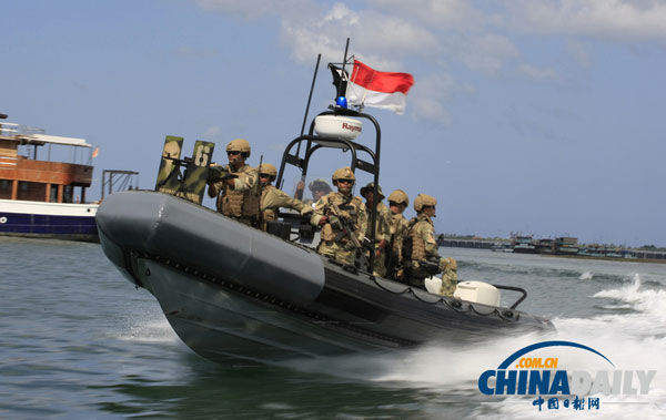 當?shù)貢r間2013年9月27日,印尼巴厘島,為迎接即將舉辦的亞太經(jīng)合論壇(APEC),印尼海軍士兵們正進行軍事訓練,準備安保工作。