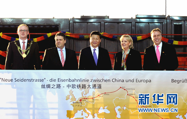 習(xí)近平表示,中方提出建設(shè)絲綢之路經(jīng)濟(jì)帶倡議,秉承共同發(fā)展、共同繁榮的理念,聯(lián)動(dòng)亞歐兩大市場(chǎng),賦予古絲綢之路新的時(shí)代內(nèi)涵,造福沿途各國(guó)人民。中德位于絲綢之路經(jīng)濟(jì)帶兩端,是亞歐兩大經(jīng)濟(jì)體和增長(zhǎng)極,也是渝新歐鐵路的起點(diǎn)和終點(diǎn)。兩國(guó)應(yīng)該加強(qiáng)合作,推進(jìn)絲綢之路經(jīng)濟(jì)帶建設(shè)。杜伊斯堡港是世界最大內(nèi)河港和歐洲重要交通物流樞紐,希望它能為促進(jìn)中德、中歐合作發(fā)展發(fā)揮更大作用。