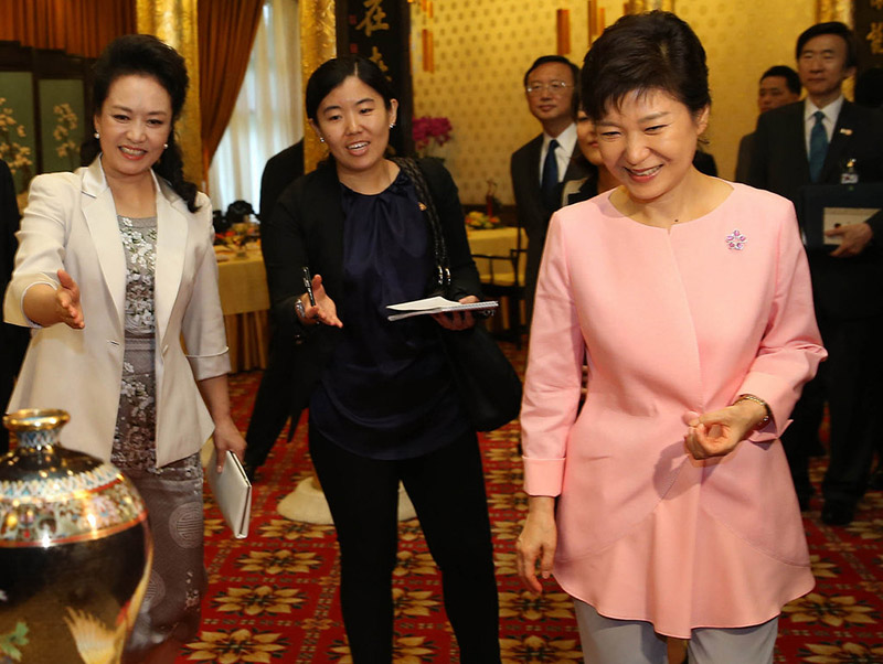 資料圖:2013年6月28日樸槿惠與習(xí)近平主席及夫人在北京釣魚臺(tái)國賓館共進(jìn)午餐
