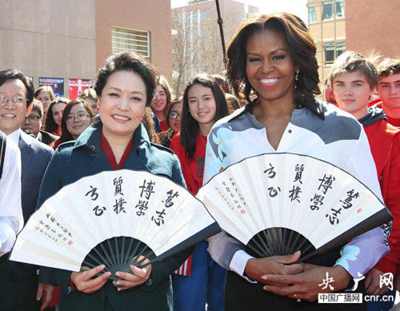 短短一周時間,米歇爾在中國過得有聲有色。不僅在彭麗媛的陪同下瞻覽了中國的古跡美景,看到了“棒極了”的猴戲,吃到了許多中國特色的美味小吃,還學(xué)寫極具中國文化特色的毛筆字。她更是走訪了許多中國的大、中小學(xué),與學(xué)校的老師和學(xué)生們傾心交談。