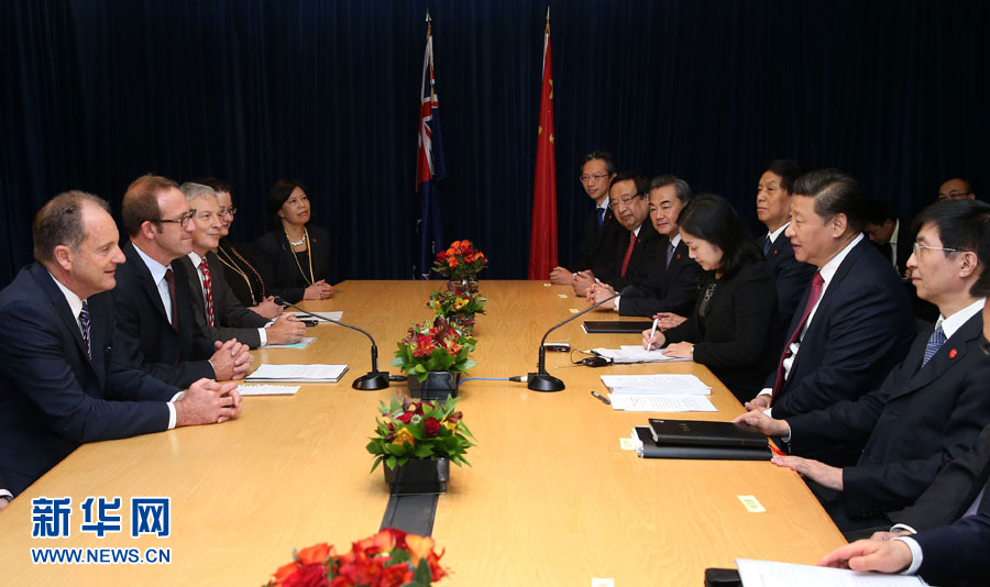 11月21日,中國國家主席習(xí)近平在奧克蘭會(huì)見新西蘭工黨領(lǐng)袖利特爾。 新華社記者龐興雷攝