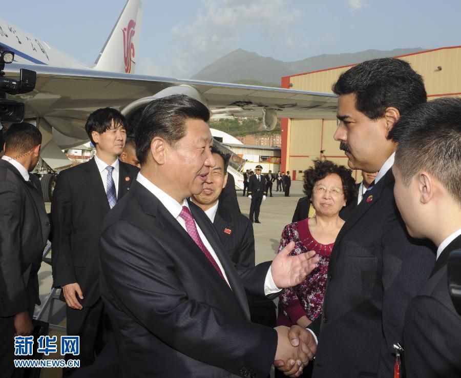 當(dāng)?shù)貢r間7月21日,國家主席習(xí)近平結(jié)束對委內(nèi)瑞拉的國事訪問。這是離開加拉加斯時,委內(nèi)瑞拉總統(tǒng)馬杜羅夫婦和多名政府部長、三軍高級將領(lǐng)為習(xí)近平送行。新華社記者 謝環(huán)馳 攝