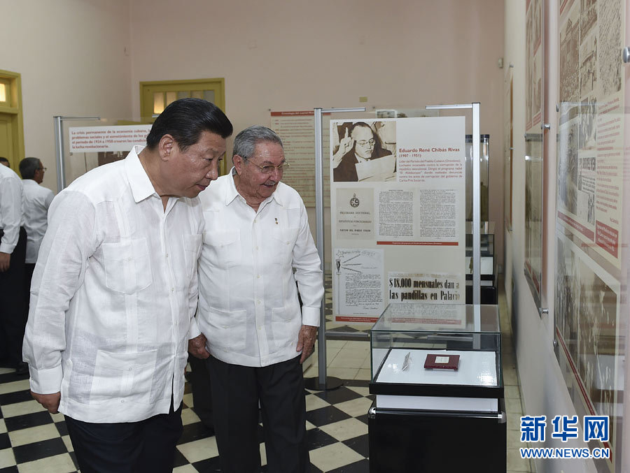 當(dāng)?shù)貢r(shí)間7月23日,國家主席習(xí)近平在古巴國務(wù)委員會(huì)主席兼部長會(huì)議主席勞爾·卡斯特羅全程陪同下,訪問古巴第二大城市、被稱為“英雄城”的圣地亞哥。這是習(xí)近平和勞爾參觀蒙卡達(dá)兵營舊址。新華社記者蘭紅光攝