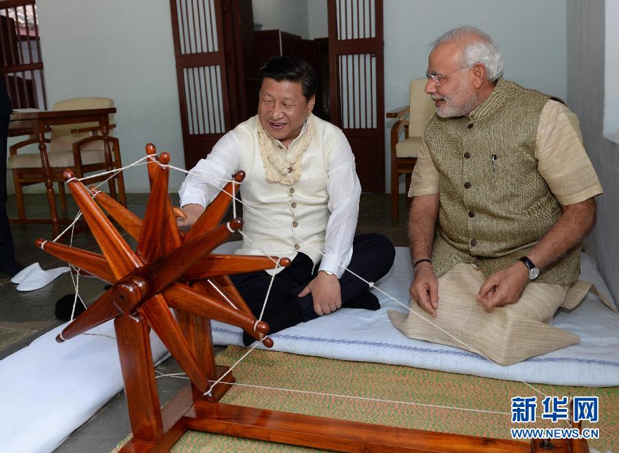 當(dāng)天下午,習(xí)近平在莫迪陪同下參觀甘地故居。紅瓦白墻,綠樹成蔭,印度少年在草坪上吟唱甘地名言。習(xí)近平身穿莫迪贈(zèng)送的印度傳統(tǒng)夾克抵達(dá)甘地故居,莫迪向前迎接。在甘地圖片展室,莫迪向習(xí)近平介紹甘地生活和斗爭(zhēng)經(jīng)歷。習(xí)近平向甘地銅像敬撒花瓣。在甘地居室,莫迪介紹了甘地清貧簡(jiǎn)樸的生活方式,向習(xí)近平贈(zèng)送象征著“甘地主義”和平勤勞精神的手紡棉紗條。習(xí)近平按照當(dāng)?shù)亓?xí)慣,將棉紗條掛在甘地畫像前,表示敬意。習(xí)近平親自搖動(dòng)甘地曾經(jīng)使用過的紡車。莫迪向習(xí)近平贈(zèng)送關(guān)于甘地的書籍和當(dāng)年南非華人支持甘地的海報(bào)。習(xí)近平指出,中印兩國(guó)人民在反對(duì)殖民主義、爭(zhēng)取民族獨(dú)立的斗爭(zhēng)中相互同情、相互支持,結(jié)下深厚友情。我們要把它傳承下去,發(fā)揚(yáng)光大。