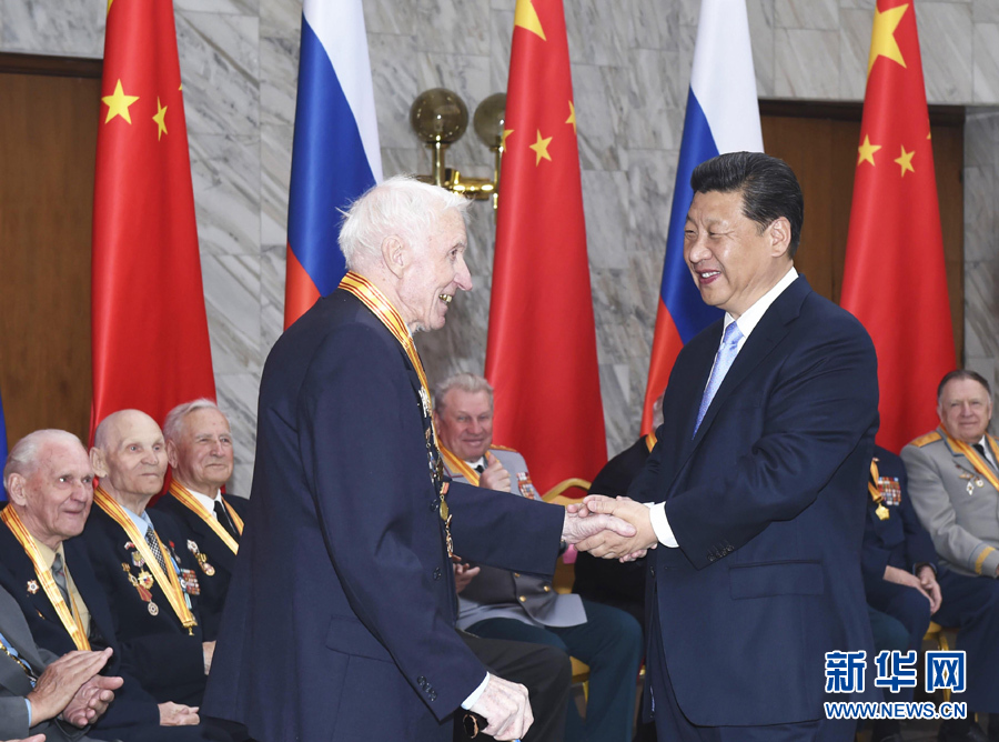 5月8日,國家主席習近平在莫斯科會見曾在中國東北抗日戰(zhàn)場上和衛(wèi)國戰(zhàn)爭中浴血奮戰(zhàn)的18名俄羅斯老戰(zhàn)士代表。 新華社記者 張鐸 攝