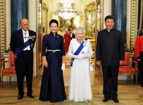 10月20日,國家主席習近平和夫人彭麗媛出席了英國女王伊麗莎白二世在白金漢宮舉行的盛大歡迎晚宴。