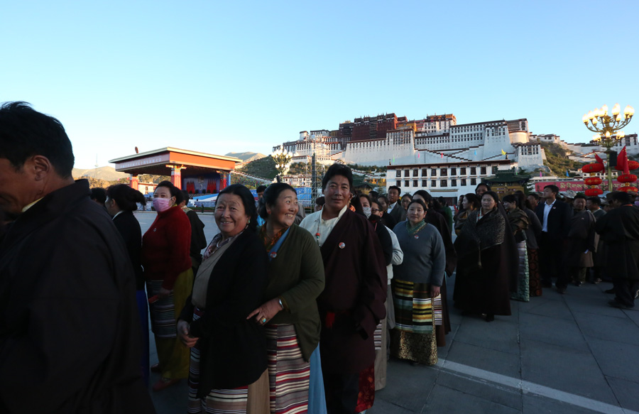 今年是西藏自治區(qū)成立50周年。9月8日上午10時(shí),西藏自治區(qū)成立50周年慶祝大會(huì)在拉薩市布達(dá)拉宮廣場(chǎng)舉行。圖為參加慶祝大會(huì)的群眾正在入場(chǎng)。新華網(wǎng) 田富升 攝