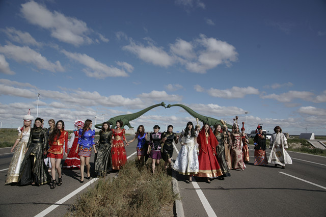(中蒙俄三國(guó)模特在二連浩特市市門)
