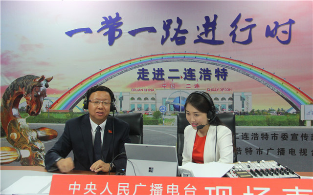 本期嘉賓二連浩特市委書記羅青與主持人成亞在直播間