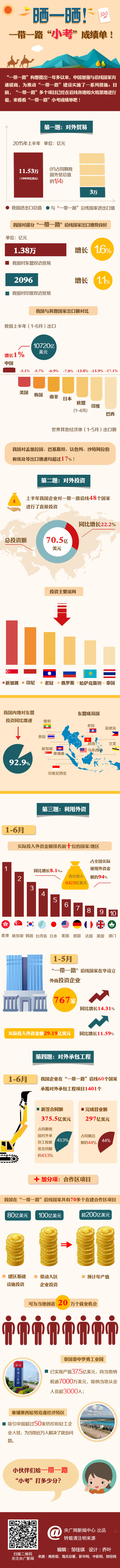 目前,已經(jīng)有60多個(gè)國(guó)家和國(guó)際組織積極響應(yīng)一帶一路的倡議,快來(lái)看看“一帶一路”上半年的建設(shè)成果吧!