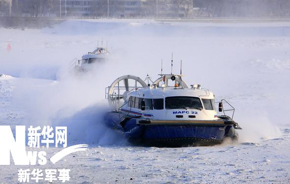 俄羅斯氣墊船駛向黑河口岸。新華社記者 查春明攝