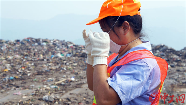 何小容,成都市固體廢棄物衛(wèi)生處置場填埋場場地指揮,2010年榮獲四川省勞動模范稱號。她主要的工作職責就是把每天入場的500余臺垃圾車輛指揮到指定地點傾倒,再指揮推土機把傾倒的垃圾推平壓實。中工網(wǎng)記者 葛姍攝