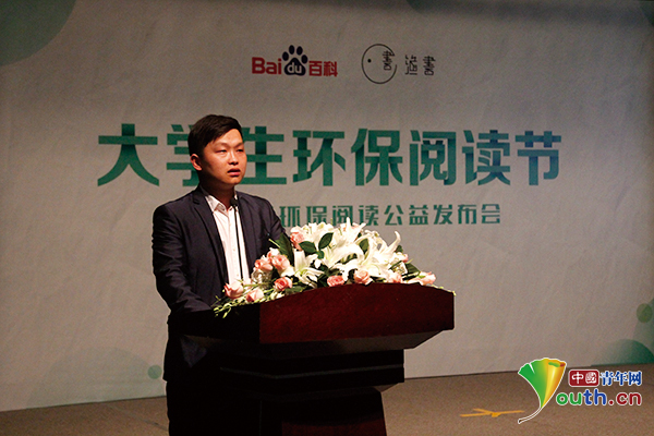 尚曉輝出席大學(xué)生環(huán)保閱讀節(jié)暨全民環(huán)保閱讀公益發(fā)布會并講話。中國青年網(wǎng)記者 劉喆 攝