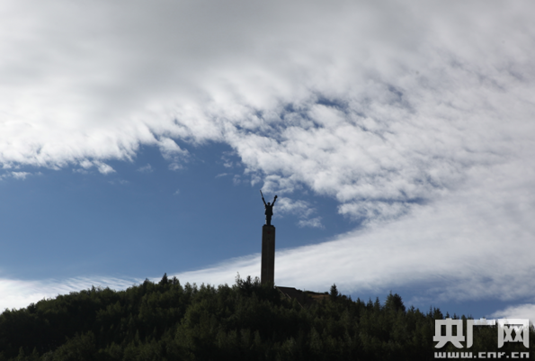 從松潘縣城出發(fā),沿著213國道行駛不久,遠遠的就會看到元寶山頂上的一座紀念碑。