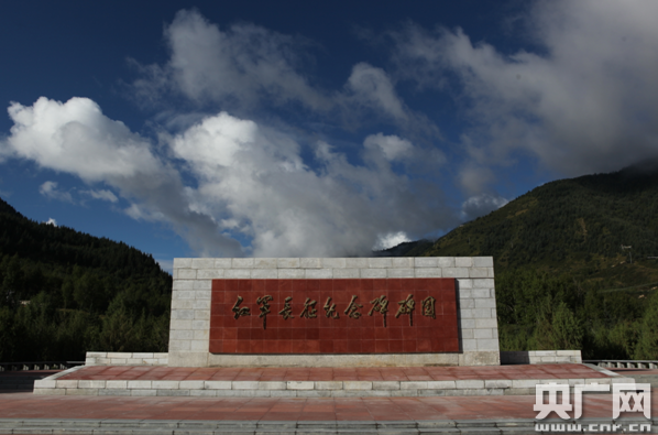 這座紀念碑屬于松潘紅軍長征紀念碑園的一部分,碑園門口上九個燙金的大字由當時已經(jīng)84歲的鄧小平題寫。