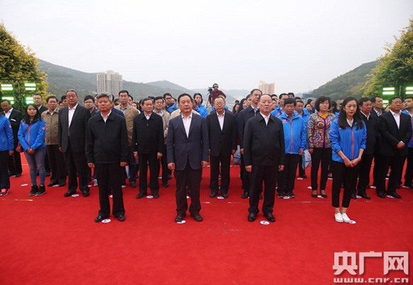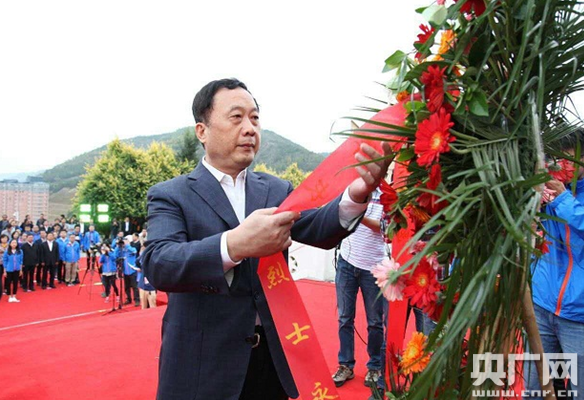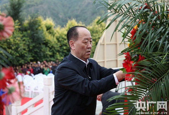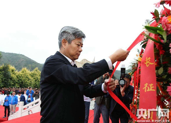 任賢良向中央紅軍長(zhǎng)征勝利紀(jì)念碑敬獻(xiàn)花籃。