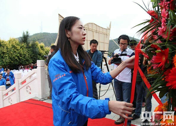 高永中向中央紅軍長(zhǎng)征勝利紀(jì)念碑敬獻(xiàn)花籃。