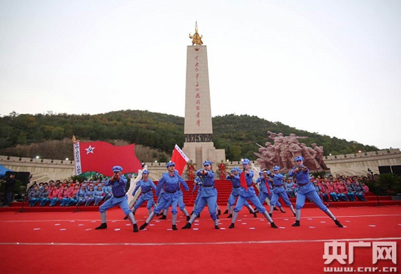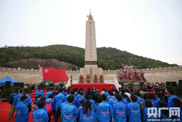 徐新榮向中央紅軍長(zhǎng)征勝利紀(jì)念碑敬獻(xiàn)花籃。
