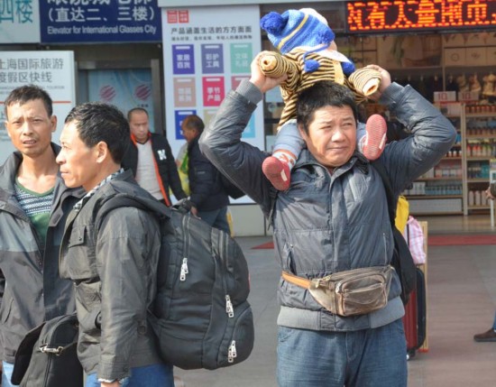春運(yùn)期間,上海長(zhǎng)途汽車客運(yùn)總站前擁擠的客流(劉磊 攝)