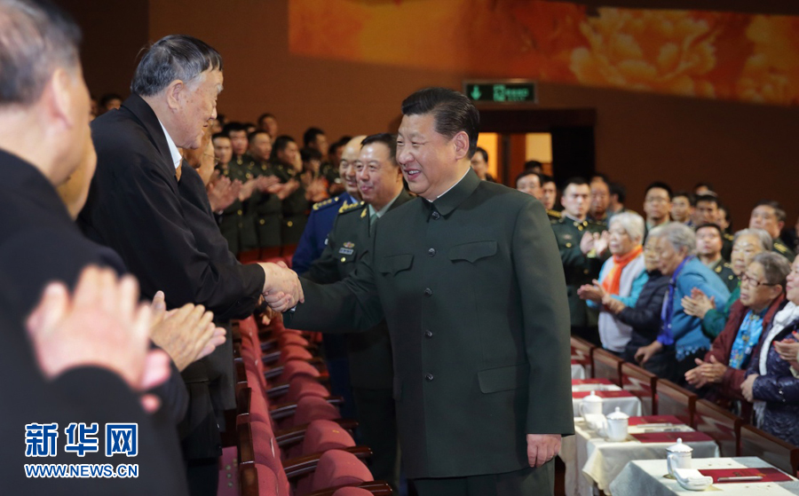 1月28日,中央軍委慰問(wèn)駐京部隊(duì)老干部迎新春文藝演出在北京舉行。中共中央總書記、國(guó)家主席、中央軍委主席習(xí)近平出席,向在場(chǎng)的軍隊(duì)老同志,向全軍離退休老干部,致以新春?jiǎn)柡蚝妥8。新華社記者李剛攝