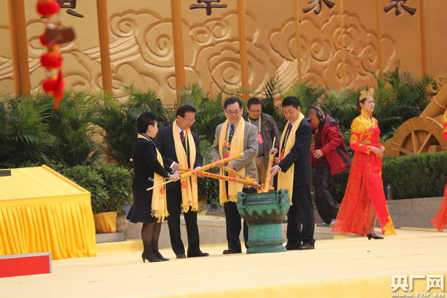 嘉賓們上臺凈手后,一起點(diǎn)燃手中的香,用上香表達(dá)對始祖的敬仰與追思。