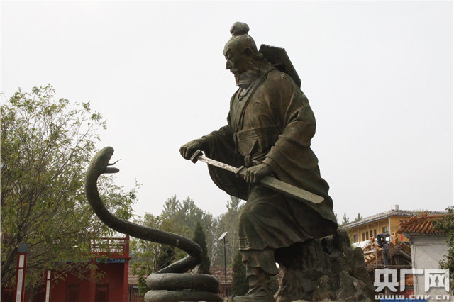 對于居住在芒碭山一帶的人而言,劉邦斬蛇的傳說可謂家喻戶曉:秦朝末年,時(shí)為沛縣泗水亭亭長的劉邦,負(fù)責(zé)押送一批刑徒,到驪山為秦始皇修建陵墓,一路上刑徒逃亡不斷,到達(dá)芒碭山腳下時(shí),刑徒已逃走大半。按照秦朝法律,刑徒半路逃走,押解之人將被處以重刑。