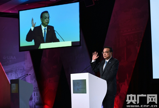 國務(wù)院總理李克強當(dāng)?shù)貢r間5日下午在里加出席第六屆中國—中東歐國家經(jīng)貿(mào)論壇并發(fā)表主旨演講。